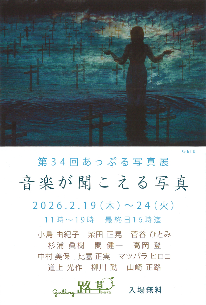 Home 展覧会情報 第34回あっぷる写真展「音楽がきこえる写真」 第34回あっぷる写真展「音楽がきこえる写真」 2026.01.6 展覧会情報 Tweet Share +1 Hatena Pocket RSS feedly Pin it 開催期間: 2026年2月19日(木)~2026年2月24日(火) 11:00~19:00 ※最終日は16:00迄 開催場所:展示室[[草]] 14Fエレベータ降りてすぐです。 【入場無料】